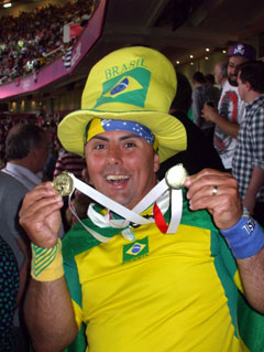 Un colpo di tacco particolarmente inutile scatena i buuu dello stadio intero: stadio che nel frattempo si è riempito e offre una prospettiva spettacolare. Tra gli ultimi a prendere posto, nel mio settore, è il più folkoristico dei tifosi brasiliani, che avevo già fotografato prima di entrare. Che fosse seduto di fianco a me era una possibilità su 70.000 (in realtà no, se gli spettatori sono 70.000 è una possibilità su poco meno di 35.000 NdA) – tanti sono i paganti, secondo quanto ci annuncerà lo speaker – che incredibilmente si realizza.